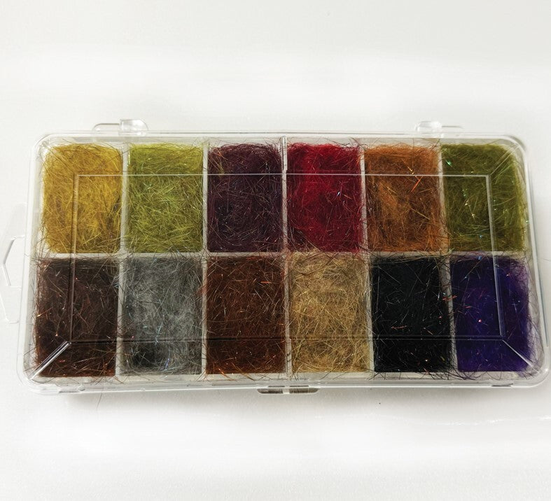 We designed our new Major Spike Dubbing to be the spikiest, easy-to-dub dubbing made. To achieve this, we blended extra-long, spiky guard hair with extra soft underfur and added a small amount of synthetic flash material. The soft underfur makes for easy finger dubbing without loss of guard hair. While Major Spike Dubbing works well for finger dubbing, it is the best dubbing ever for loop dubbing and constructing dubbing wires. Major Spike Dubbing is outstanding for medium to large-size nymphs and streamers. The 14 colors we've blended are all designed with caddis larvae, large mayfly and stonefly nymphs, and streamers in mind.